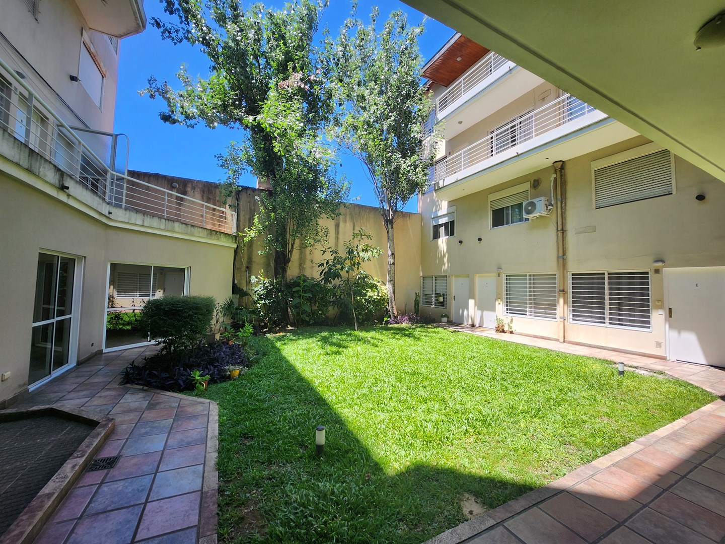 Hermoso departamento de 1 ambiente y medio . Posee cochera cubierta de 10,35 m2 (4,70 x 2,20 mts) con un adicional de alquiler de $ 120.000. Ubicado en 3° piso contrafrente, con vista al jardín interno, súper luminoso. Estado impecable y con excelente luz natural durante todo el día.