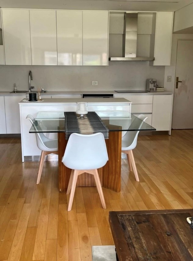 Living Comedor con cocina integrada con isla . Griferia alemana y muebles de laca. Hermoso balcon con vista a la Plaza.