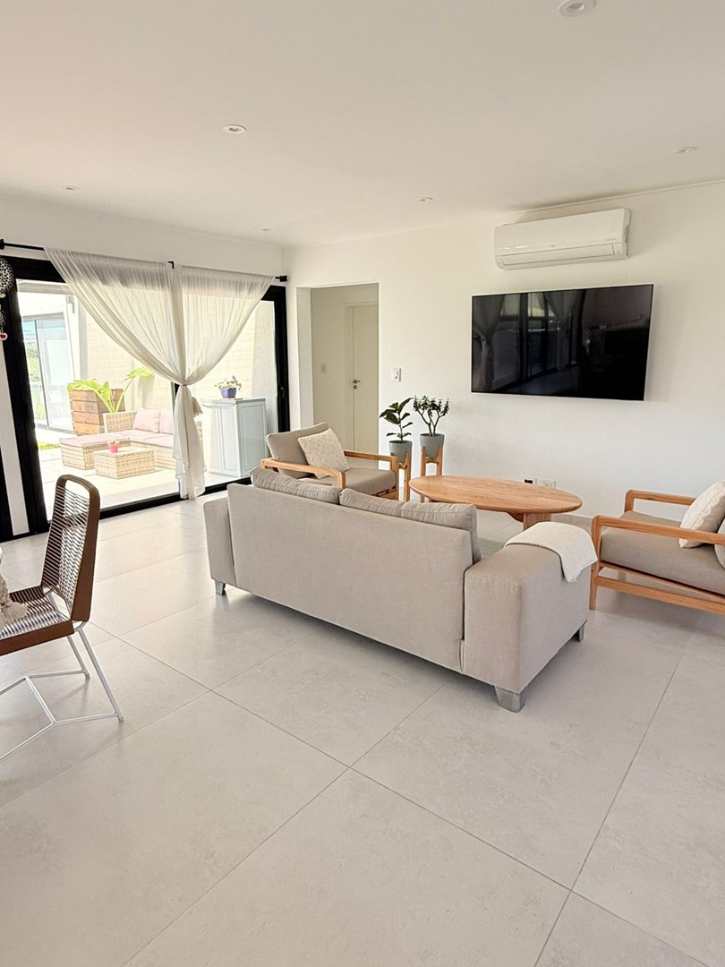 Les presentamos una casa con exquisitos materiales de terminación que se encuentra dentro del Area 8 en el Barrio San Sebastián, Zelaya - Pilar. La casa se desarrolla en una planta, sobre 190m2 totales en un lote de 800m2 que se encuentra perimetral a la calle principal del Barrio. Posee 3 dormitorios, uno de ellos es en suite con vestidor con frente de placard y luz natural. Los otros dos dormitorios comparten un baño completo. Su Techo posee lozeta con membrana soplete, preparada para un 2do piso. La Pileta revestida con piedra bali. Todos los Pisos son de Porcellanato con placas de 1,69 x 0,60cm Posee Losa radiante eléctrica con termoestato en cada ambiente. -- Detalles de la Cocina: Barra de silestone doble grueso. Muebles bajo alacena laqueado y barra con mueble semilaqueado. Espacio lavavajillas. Bacha jonshon con todos sus accesorios. Cocina con gas / eléctrica. -- Detalles del Lavadero: Muebles laqueados / mármol negro Brasil leder Termotanque Escabe alta recuperación de 52 litros -- Toillete: Microcemento etfan Griferia Ilva Artefactos Ferrum. -- Baño principal con ventilación natural y con un detalle de revestimiento español en pared. -- Características generales del inmueble: Doble vidrio con cámara A45 anodizadas con detalles de terminación con cantos. Vidrios del dormitorio principal con film de vista/temperatura. Puerta de cedro con blindex y cerradura electrónica. Tarquini quimtex en todo el exterior. Pintura sintetico blanco lavable en el interior. Altura a piso/techo 2.60 Aires BGH en dormitorios y LG inverter en living. Cortinas Blackout y screen en todos los dormitorios. Luces empotradas. Griferías FV en todos sus baños. Enchufes para TV en altura en todos sus dormitorios. Mas información sobre el Barrio San Sebastián: Está ubicado en el límite de Escobar y Pilar. Tiene un acceso en el km 54,5 de la autopista panamericana y cuenta con todos los servicios necesarios para que vivas la naturaleza de una forma diferente. Está compuesto por 13 barrios comunicados por un boulevard, lagunas, cancha de golf y más de 100 hectáreas destinadas a los deportes conforman este maravilloso ecosistema, ideal para disfrutar todos los días junto con tus seres más queridos. El complejo cuenta con 154 hectáreas de lagunas, Cancha de golf, Canchas de futbol y tenis, Seguridad 24hs, Club House, entre otras comodidades. -- La información contenida en el presente aviso es meramente a título informativo. Las medidas y superficies son aproximadas y no resultan vinculantes. Los datos definitivos son los que surgen del título de propiedad. Los montos de expensas, tasas e impuestos deben ser confirmados ya que dependen de la fecha en la que se obtuvo la información. El valor indicado en el presente puede ser modificado sin previo aviso. Venta supeditada al cumplimiento por parte del propietario de los requisitos de la resolución general nº 2371 de la Afip (pedido de COTI). Corredora Inmobiliaria y Martillera Publica responsable CMCPSI 5048 / CUCICBA 5010.