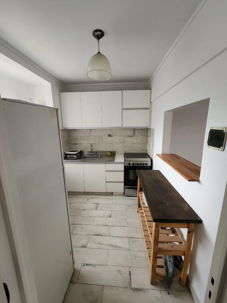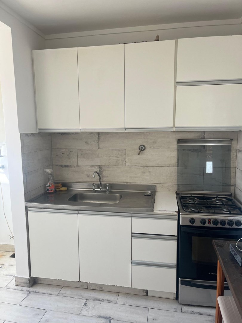 Tiene una cocina con barra de desayunador, hacia el living. Todo reciclado, con buen gusto!