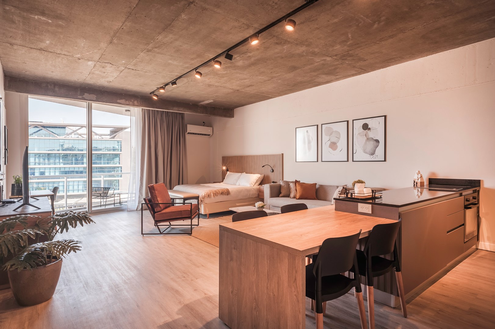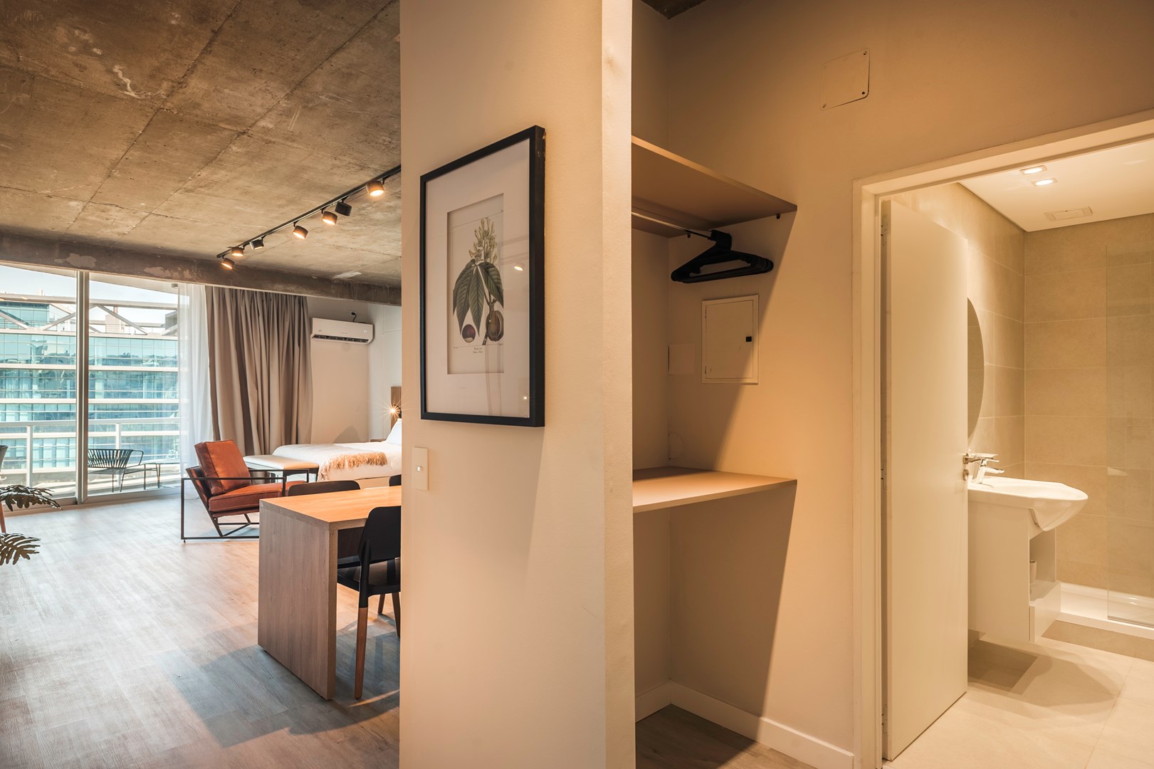 Hermosa unidad con estilo moderno e innovador ubicado en Ayres Vila, en un punto geográfico único en Pilar. Combina diseño, accesibilidad, oficinas con departamentos muy luminosos y las mejores vistas. Accesos múltiples al complejo cómodos desde Panamericana y conectado con servicios y oferta gastronómica. Una gran oportunidad para invertir, siendo una de las zonas mas buscadas y exclusivas en Pilar. El departamento cuenta con Hall de ingreso que se abre al Living-comedor y cocina con desayunador. Posee un dormitorio integrado, con posibilidad de dos ambientes. Baño completo y cómodo vestidor. El balcón tiene vista al parque central con una hermosa plaza y restaurantes, cómodo y con espacio para disfrutar del aire y sol . Posee cochera cubierta y seguridad las 24 hs. El complejo Studios Work & Live está ubicado en Ayres Vila, Panamericana Ramal Pilar km 43,5. Es Apto profesional. Se desarrolla en una Planta baja, mas 4 Pisos con 140 unidades diferentes. En el 5to Piso se encuentra una espectacular terraza con una vista privilegiada y amenities : Gimnasio, Hidromasajes, Livings con Fogones, Sum, Parrilla, Sauna y Laundry. Posee un parque de 6000 m2 con variedad de especies, integrando una composición incomparable.